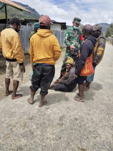Dikesempatan ini Babinsa menyempatkan diri untuk bertemu dengan Bapak Nataniel Boma selaku kepala kampung di kampung Amopa dan masyarakat kampung Amopa.