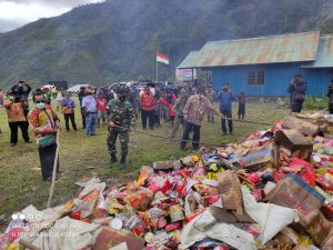 Mulia, Targethukum.com-Senin 26 Juli 2021 Pukul 11.00 Wit. Koramil 1714-01/Mulia menghadiri acara pemusnahan Barang-Barang dan makanan serta minuman yang Kadaluarsa atau tidak layak konsumsi.