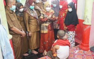 Ketua Tim Penggerak Pemberdayaan Kesejahteraan Keluarga (TP PKK) Kabupaten Lampung Selatan, Hj. Winarni Nanang Ermanto, membesuk Hendrik Alzaini (12), warga Kecamatan Palas penderita tumor otak. Wanita yang akrab dipanggil Bunda Winarni ini menyambangi kediaman Hendrik pada Selasa, 21 September 2021, kemarin.