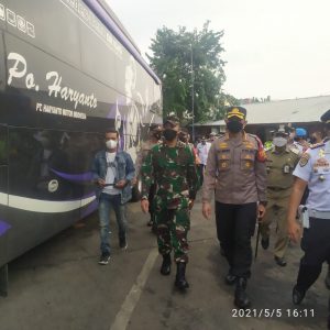 Jakarta Barat ,Targethukum.com– Dandim 0503 Jakarta Barat, Kolonel Inf Dadang Ismail Marzuki, S.IP, bersama Wakil Walikota Adm Jakarta Barat, A. Yani serta Kapolres Metro Jakarta Barat, Kombes Adi Wibowo melaksanakan kunjungan ke terminal Bus Kalideres dalam rangka pemantauan penerapan protokol kesehatan juga penerapan larangan mudik lebaran. Rabu (5/5/21).