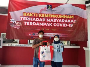 KemenkumHam dalam hal ini Kanwil KemenkumHAM propinsi Banten turut peduli dan sebagai rasa empati akan pandemi ini melakukan kegiatan pembagian bantuan paket sembako kepada warga terdampak yang berada disekitar .(29/7/2021