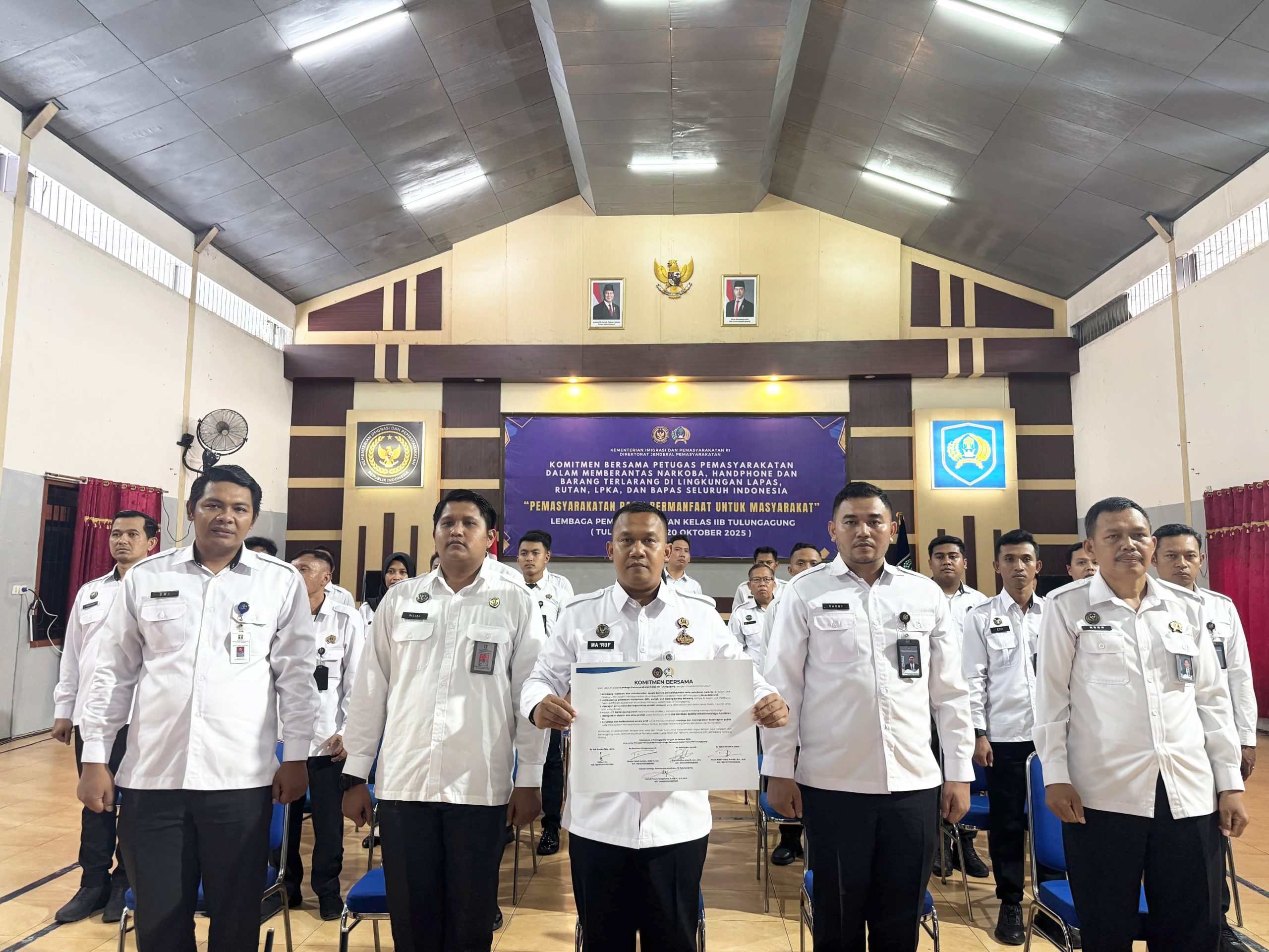Dalam pelaksanaannya, seluruh Pejabat Struktural dan Pegawai Lapas Kelas IIB Tulungagung mengikuti kegiatan dengan penuh kesadaran dan semangat pengabdian. Penandatanganan komitmen ini menjadi simbol tekad kuat untuk menciptakan lingkungan pemasyarakatan yang bersih dari penyalahgunaan narkoba, peredaran handphone ilegal, serta peredaran barang-barang terlarang lainnya yang berpotensi mengganggu keamanan dan ketertiban.