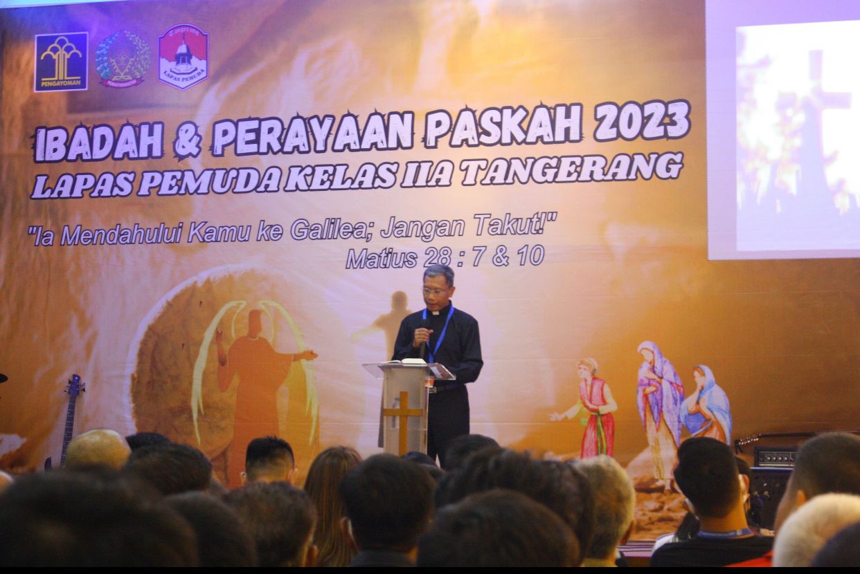 Tangerang, Targethukum.com – Hari ini (14/4/2023), Lapas Pemuda Kelas IIA Tangerang menggelar ibadah dan perayaan Paskah 2023 di Gereja Maranatha. Acara yang diselenggarakan mulai pukul 14.00 WIB ini mengambil tema “Ia Mendahului Kamu Ke Galilea; Jangan Takut!”.