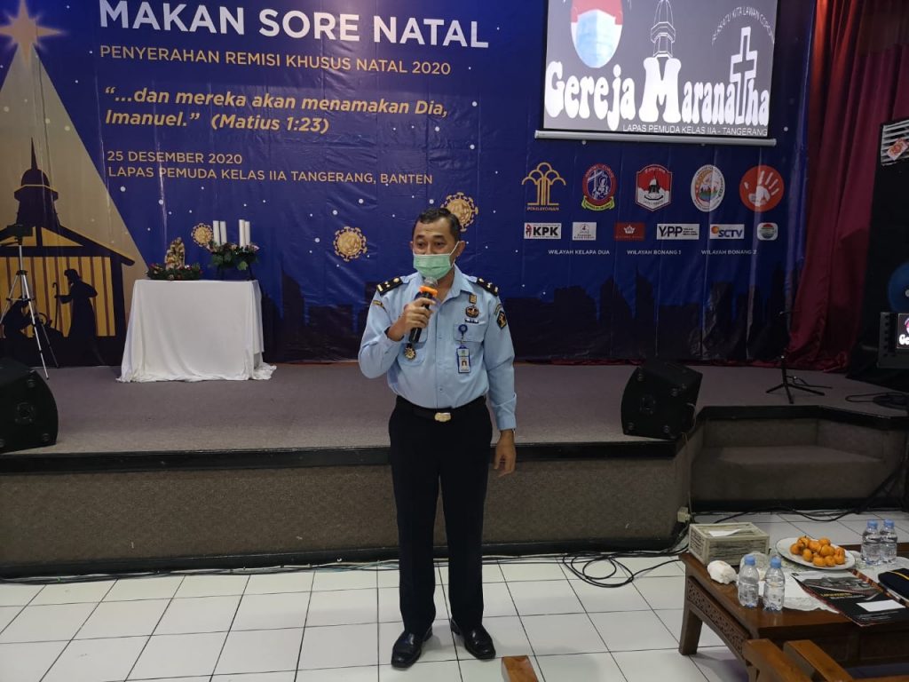 Lembaga Pemasyarakatan Pemuda Kelas IIA Tangerang (Lapas Pemuda Tangerang), Unit Pelaksana Teknis di bawah naungan Kantor Wilayah Kementerian Hukum dan HAM Banten yang juga menjadi salah satu cagar budaya di Kota Tangerang, hari ini menggelar acara Makan Siang Natal (MSN) untuk Warga Binaan Pemasyarakatan (WBP) yang beragama Nasrani secara virtual. Kegiatan ini merupakan salah satu rangkaian kegiatan dalam rangka menyambut Natal. Kegiatan ini sendiri diselenggarakan di Gereja Maranatha Lapas Pemuda Tangerang, Jumat (25/12).