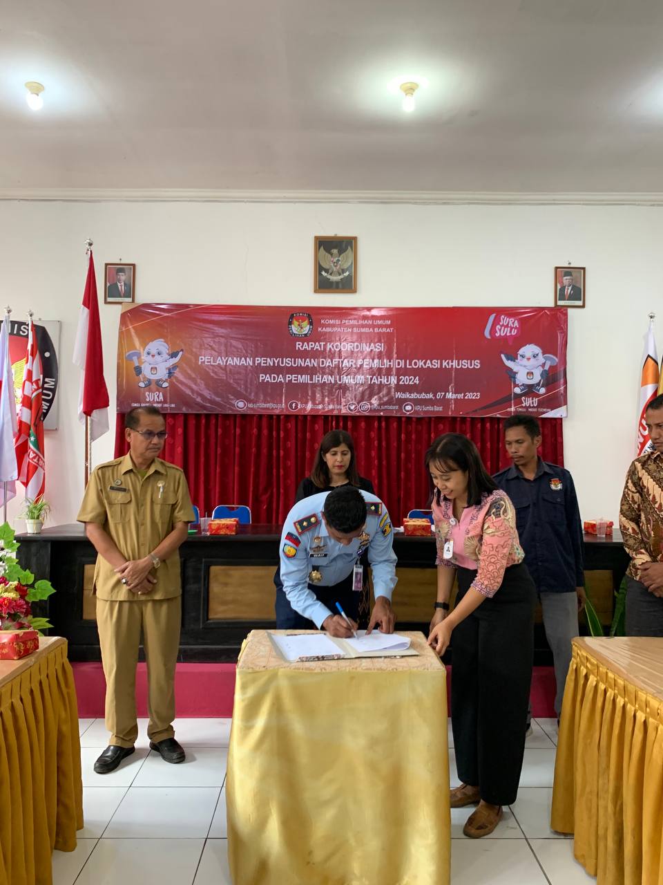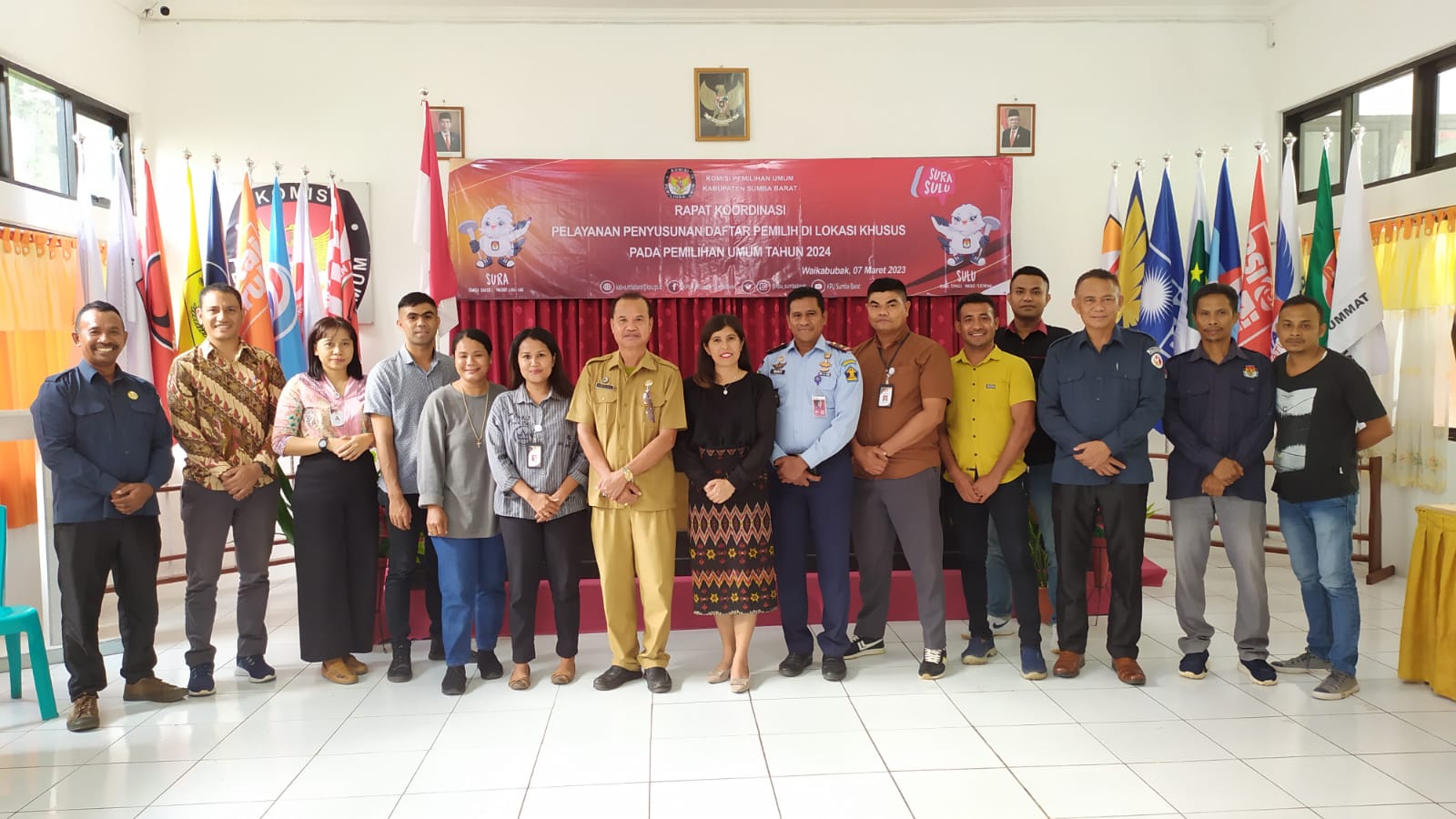 Jelang Pemilihan Umum Tahun 2024, Komisi Pemilihan Umum (KPU) Sumba Barat menggelar Rapat Koordinasi Pelayanan Penyusunan Daftar Pemilih di Lokasi Khusus pada Selasa (07/03/2023).