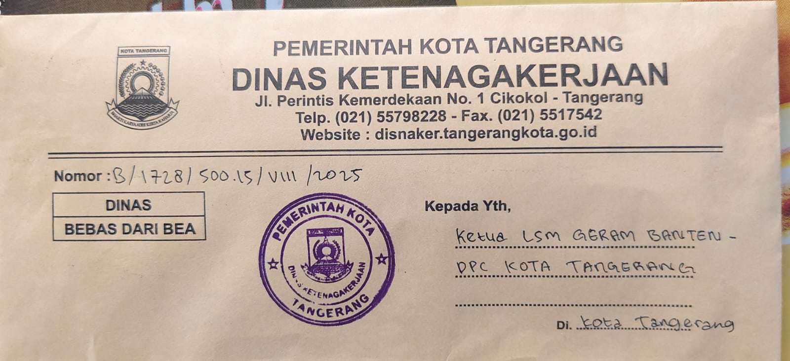 KOTA TANGERANG, Targethukum.com– Lembaga Swadaya Masyarakat (LSM) Geram Banten Indonesia, melalui DPC Kota Tangerang, melancarkan serangan balik setelah Kepala Dinas Ketenagakerjaan Kota Tangerang, Ujang Hendra Gunawan, S.Sos, MM., diduga mengabaikan laporan mereka.