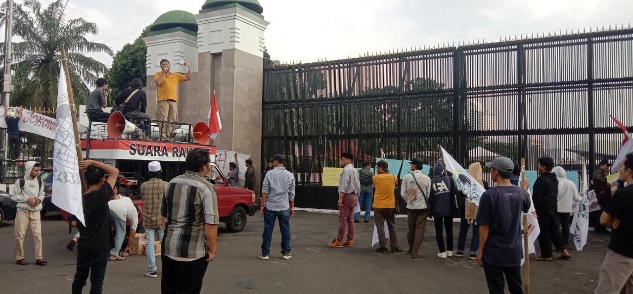“Disini negeri kami, tempat padi terhampar.. Samuderanya kaya raya.. Tanah kami subur tuan..”. Demikian sepenggal bait dari syair ‘Darah Juang’ pembuka aksi yang berkumandang dari Mobil Komando para aktivis pejuang aspirasi rakyat yang digelar di depan gedung DPR RI, Selasa (20/6-2023).