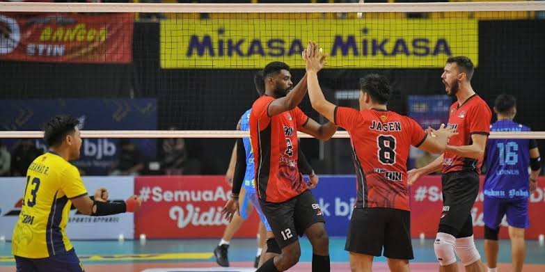 Tim voli STIN BIN sebagai tim pendatang baru di PLN Mobile Proliga 2023 ini, harus berjuang keras hingga lima set untuk menundukkan Bhayangkara 3-2 (23-25, 25-18, 25-17, 22-25, 17-15), pada laga perdana final four Proliga 2023.