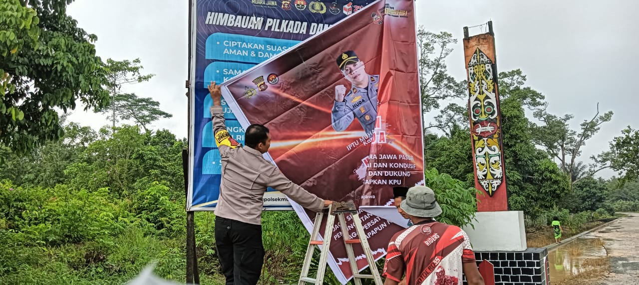 Dalam upaya menjaga situasi keamanan dan ketertiban masyarakat (kamtibmas) pasca Pemilihan Kepala Daerah (Pilkada), Bhabinkamtibmas Polsek Muara Jawa, Kelurahan Teluk Dalam, melaksanakan pemasangan spanduk imbauan kamtibmas di Jalan Karya, RT 03, Kelurahan Teluk Dalam, Sabtu (15/2).
