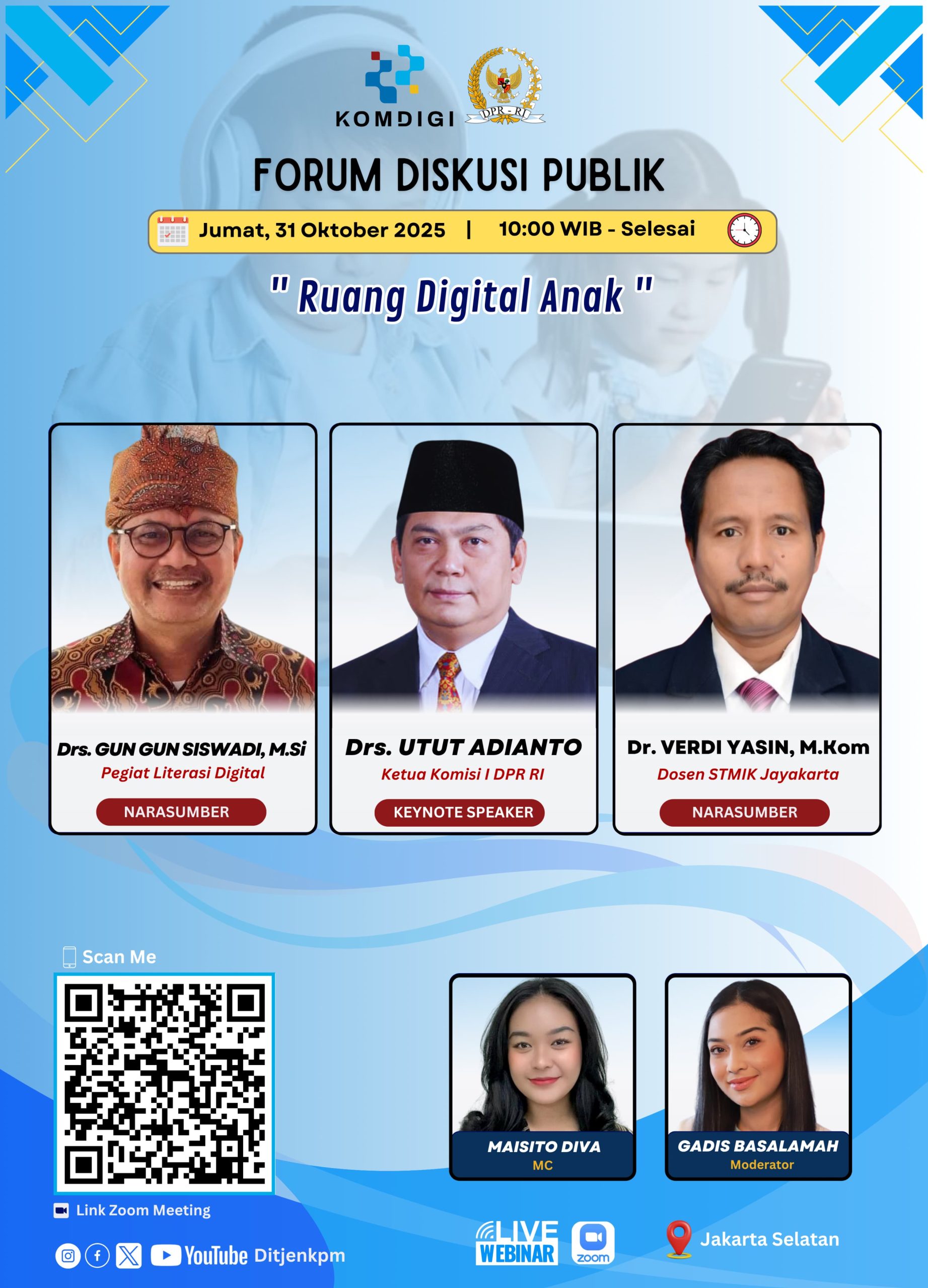 “Ruang digital anak harus menjadi taman belajar yang menyenangkan, bukan ladang bahaya. Generasi digital Indonesia harus tumbuh dengan kecerdasan, kesantunan, dan tanggung jawab,” tutup Dr. Verdi.