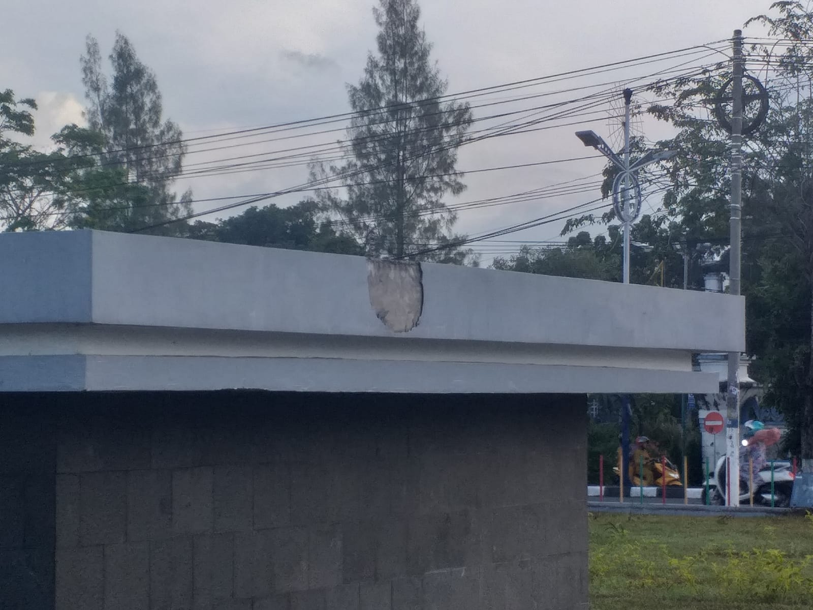 Ternyata informasi itu benar adanya dan retakan bagian dari Pondasi atas Patung Karapan Sapi tersebut sudah mengelupas, bahkan tampak jelas dari kejauhan