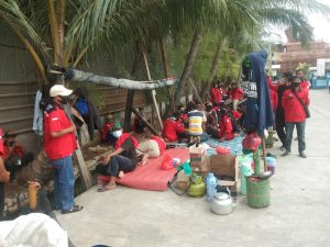 Sebanyak 70 orang buruh PT. Daya Radar Utama menggelar aksi mogok kerja di depan kantor PT. Daya Radar Utama, di poltek pos 1 Pelabuhan Tanjung Priok, Jakarta Utara.