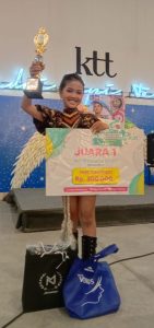 Ketiganya Yoeswan Raida Fakhira Kusuma Wardhani 9 (Rere) Siswi kelas IV UPTD SDN Rongtengah 1 Sampang Putri pasangan Hermawan Kusumahadi SE dan Maria Yusdiana, Juara 1 Batik Casual Panggung Usia A (6 – 9 tahun)