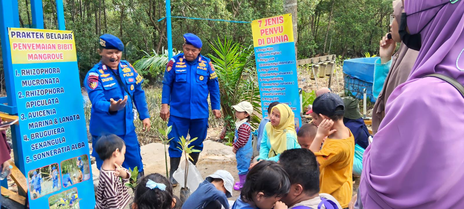 Tiga personel Ditpolairud Polda Kaltim, yaitu Bripka Taufik, Bripka Purwanto, dan Bripka David, bertugas langsung mendampingi dan memberikan pembelajaran kepada para peserta outing class yang hadir bersama orang tua dan pendamping.