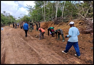 Kegiatan sasaran fisik tersebut dilakukan dari unsur TNI-POLRI dan masyarakat. Komandan satuan tugas setingkat Kompi Dan SSK Letda Inf Adi Sofyan mewakili Dansatgas TMMD Letkol Arm Asep Ridwan mengatakan bahwa cuaca panas dan hujan adalah teman.