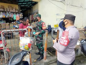 Dirinya juga menyampaikan bahwa selain memberikan himbauan para Babinsa kami juga membagikan masker kepada pengunjung pasar, pedagang dan juga masyarakat yang ada sekitar yang tidak menggunakan masker.