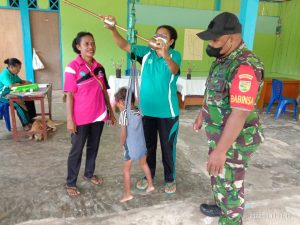 Babinsa Posramil 1708-01/Biak Timur, Sertu Ferdison Wanmafma mendampingi petugas kesehatan dalam kegiatan Pos Pelayanan Terpadu (Posyandu) bagi anak- anak balita, bertempat di Desa Bakribo, Distrik Oridek, Sabtu (12/03/2022).