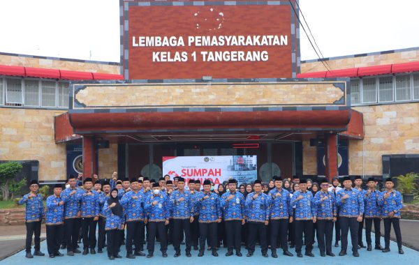 Lapas Kelas I Tangerang memperingati Hari Sumpah Pemuda ke-97 dengan penuh khidmat. Upacara digelar di halaman depan lapas dan diikuti oleh jajaran pejabat strukturan dan pegawai pemasyarakatan lainnya, dengan mengusung tema nasional “Pemuda Pemudi Bergerak, Indonesia Bersatu.”