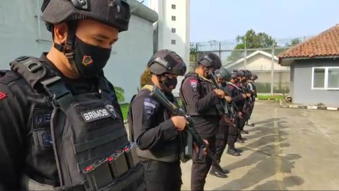 “Satuan Brimob Polda Jawa Barat berjaga di pos pengamanan terpadu di pintu masuk gerbang luar Lapas. Bersenjata lengkap, mereka membantu mengawasi dan memeriksa setiap tamu yang datang ke Lapas,” terangnya.