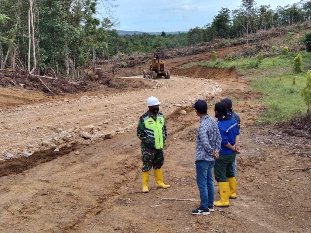 Pengawas dari Dinas PUPR Kab Natuna meninjau Lokasi sasaran Fisik TMMD yaitu pembuatan Jalan Baru, Sabtu (27/03/2021).