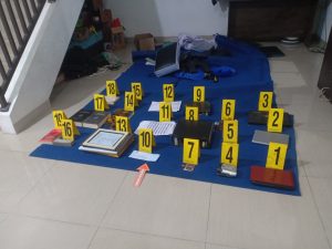 Pukul 17.05 WIB, penggeledahan selesai, selanjutnya rumah yang di jadikan tempat perekrutan karyawan di pasang Police Line oleh Densus 88 Mabes Polri.