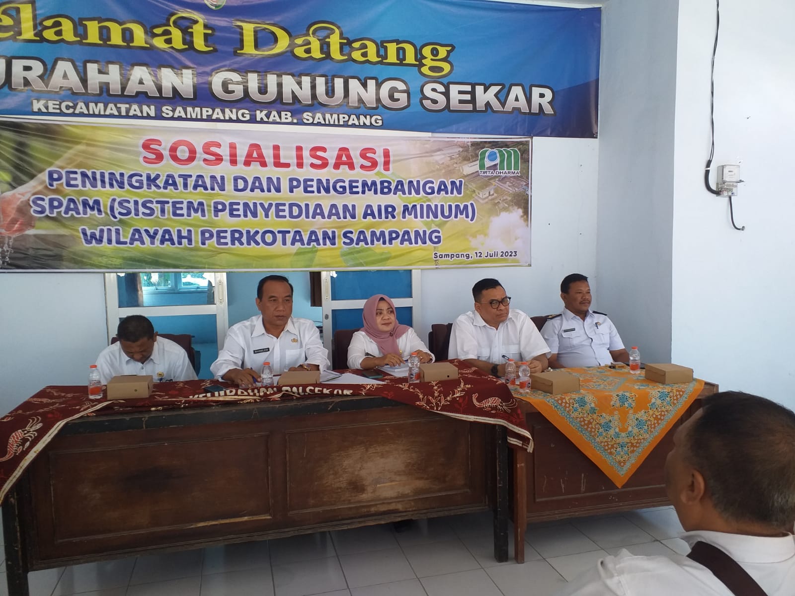 Sosialisasi Peningkatan dan Pengembangan Sistem Penyediaan Air Minum (SPAM) Wilayah Perkotaan di Aula Kelurahan Gunung Sekar rabu 12/7 itu dihadiri oleh Asisten 2 Setkab Sri Handoyo Sudono, Siti Muathifah mewakili PUPR, H Marnilem Dewan Pengawas Perumdam Trunojoyo, H Dani Darmawan Direktur Perumdam Trunojoyo dan Lurah Gunung Sekar