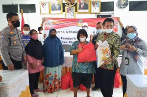 Kapolsek Kepulauan Seribu Selatan Polres Kepulauan Seribu mewakilkan Kanit Binmas nya dalam acara penyaluran Bantuan Sosial (Baksos) bagi Lansia dan Penyandang Disabilitas warga Pulau Tidung Kecamatan Kepulauan Seribu Selatan di Ruang Aula Kantor Kelurahan Pulau Tidung Kepulauan Seribu Selatan, Jumat (10/12).