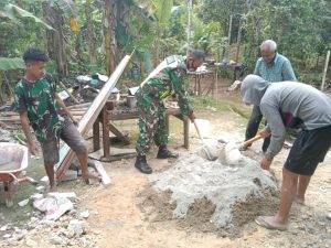 Kepedulian Babinsa di lapangan untuk membantu kegiatan pembangunan rumah TMMD selain itu juga untuk menciptakan kekuatan kemanunggalan TNI dengan Rakyat.