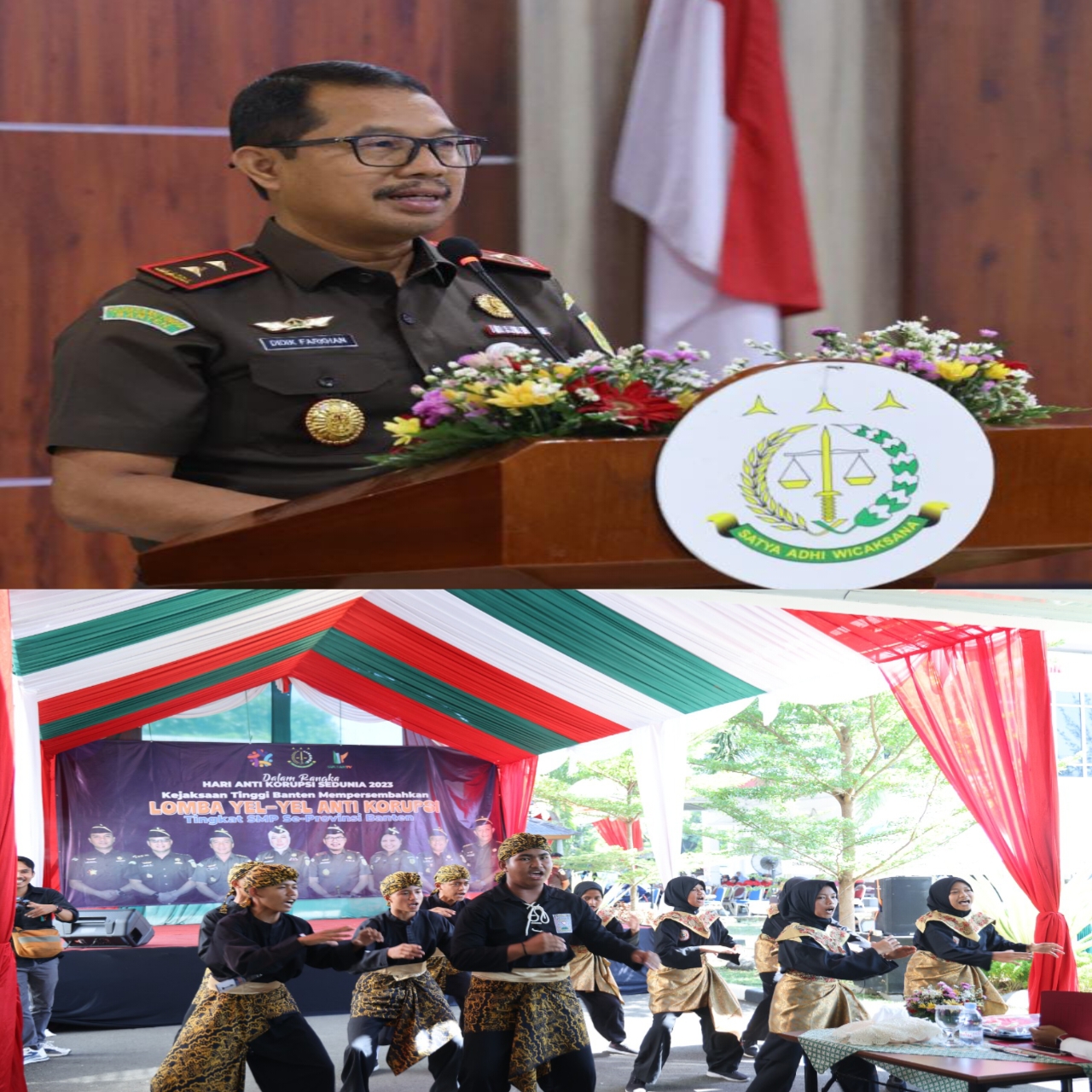 Dalam rangka memperingati Hari Anti Korupsi Sedunia Kejaksaan Tinggi Banten menggelar lomba Cerdas Cermat, Pidato dan Yel-Yel Anti Korupsi Tingkat SMP se-Provinsi Banten, yang dilaksanakan di halaman Kantor Kejaksaan Tinggi Banten. Kegiatan itu dibuka langsung oleh Kepala Kejaksaan Tinggi Banten Dr. Didik Farkhan Alisyahdi, dan dihadiri oleh Wakil Kepala Kejaksaan Tinggi Banten Ahelya Abustam, SH.MH, Ketua Ikatan Adhyaksa Dharmakarini Wilayah Banten Ny. Ery Didik Farkhan, Para Asisten Kejati Banten, Kepala Kejaksaan Negeri Se-Wilayah Banten dan Jajaran, Kepala Sekolah dan Guru yang hadir mendampingi para peserta. Dalam kesempatan tersebut, Kepala Kejaksaan Tinggi Banten Dr. Didik Farkhan Alisyahdi mengharapkan perlombaan ini dapat menjadi pemicu pelajar di tingkat SMP khususnya untuk mengenal hukum. “Akhirnya kita bisa mewujudkan suatu kegiatan yang menjadi triger pemicu adek-adek semua belajar apa itu hukum pada hari Antikorupsi Sedunia ini,” ujar Kajati. Lebih lanjut, Kajati menyampaikan dipilihnya peserta perlombaan pada tingkat SMP di Hari Antikorupsi Sedunia yang diperingati setiap tanggal 9 Desember diharapkan dapat membentuk jiwa antikorpusi sejak dini. “Diharapkan kegiatan semacam ini dapat membentuk jiwa anti korupsi. Mengapa kita memilih SMP, yaitu semata-mata untuk memberikan pemahaman hukum lebih dini,” ungkap Kajati Banten. Kepala Kejaksaan Tinggi Banten juga menyampaikan akan mengadakan kegiatan Office Tour, yang nantinya akan menjadi progam unggulan Kejaksaan. Progam Office Tour mempunyai tujuan agar lembaga Kejaksaan semakin dikenal dan dicintai oleh masyarakat serta mewujudkan Kejaksaan yang humanis. “Awal tahun nanti, Kejati Banten juga akan mengadakan Office Tour dengan menggandeng progam Penyuluhan Hukum Jaksa Masuk Sekolah dan akan melihat secara langsung kegiatan didalam lapas, dan ini akan menjadi progam unggulan kejaksaan” pungkas Kajati. Dari hasil perlombaan terpilih pemenang diantaranya dalam kategori lomba Cerdas Cermat yaitu Juara 1 Kabupaten Tangerang, Juara 2 Kota Serang, Juara 3 Kota Tangerang dan Juara Harapan 1 Pandeglang. Sedangkan dalam kategori lomba Pidato, dimenangkan oleh Juara 1 SMPN 3 Pandeglang, Juara 2 SMPN 11 Tangerang Selatan, Juara 3 SMP Pahoa Kabupaten Tangerang. Sementara dalam kategori lomba Yel-Yel, Juara 1 diraih oleh SMPN 1 Kramatwatu, Juara 2 SMPN 3 Cikupa, Juara 3 SMPN 3 Rangkasbitung Lebak.