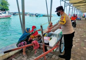 Sementara Kapolsek Kepulauan Seribu Selatan AKP Wisnu Wardono menjelaskan, “kita membagikan masker medis secara gratis kepada warga yang berada diruang publik sejumlah 750 pcs, masker medis ke warga di Pulau Tidung, Pulau Pari, Pulau Lancang dan Pulau Untung Jawa secara serentak”.