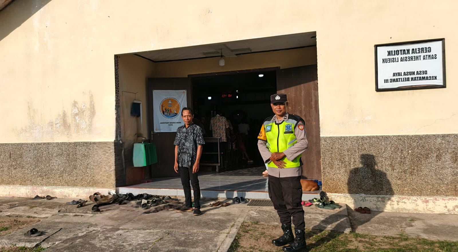 Anggota Polsek Belitang III melaksanakan pengamanan ibadah gereja serta kegiatan Minggu Kasih bersama warga. Pada kesempatan kali ini warga diajak bersama-sama menjaga Kamtibmas di lingkungan dengan tetap meningkatkan siskamling di lingkungan warga.