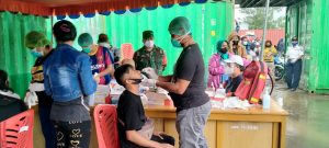 “Kita bersama sama dengan Tim Satgas Penanggulangan Covid-19 tidak pernah lelah dalam upaya mencegah penyebaran Covid-19 di Yapen, dan juga para Babinsa yang tersebar di wilayah-wilayah pun tak henti-hentinya memberikan himbauan untuk terus disiplin menjalankan prokes serta mengajak warga untuk di vaksin,” pungkasnya.