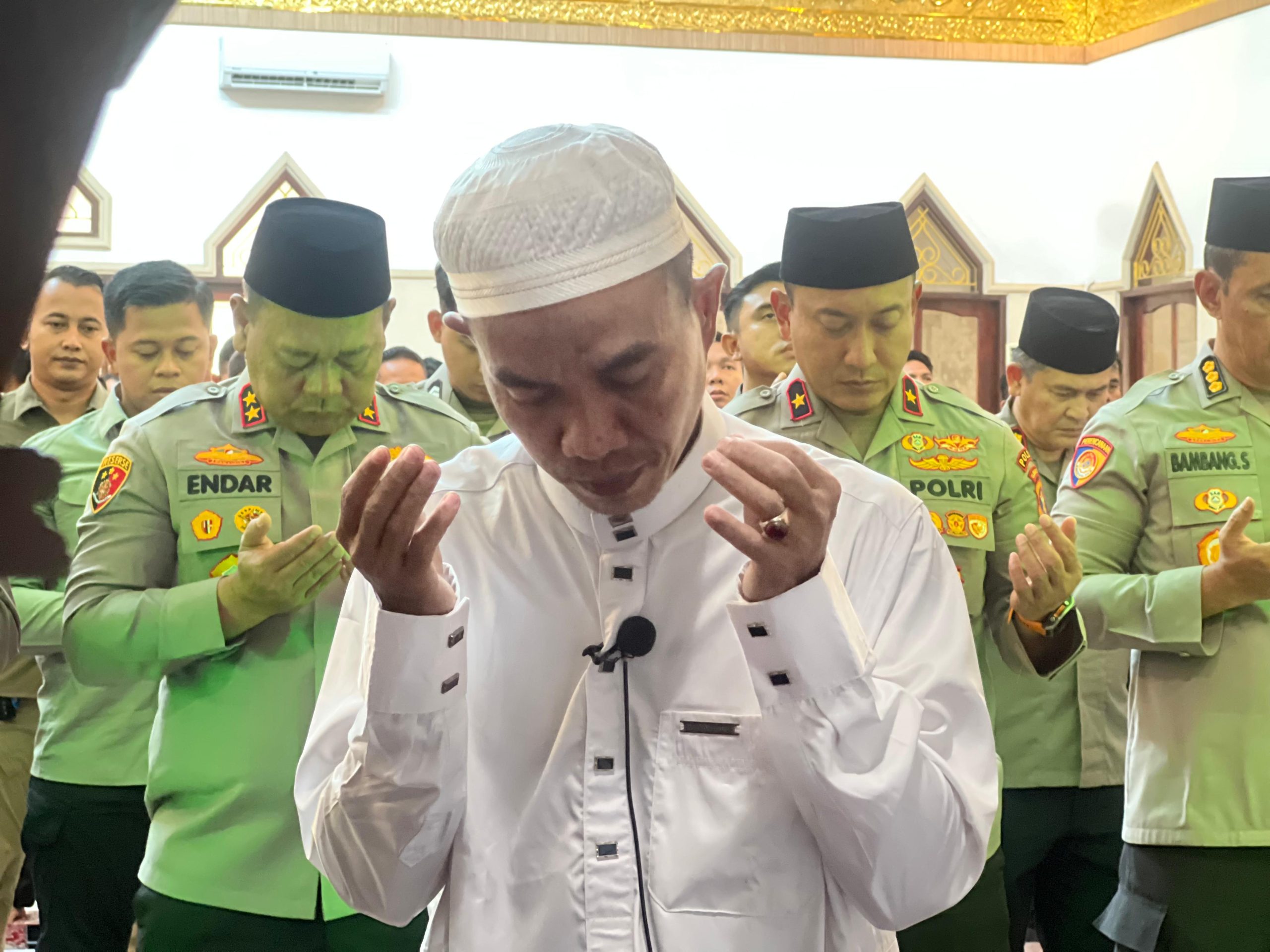 Shalat gaib dilaksanakan di Masjid Al Ikhlas Polda Kaltim seusai pelaksanaan shalat Jum’at. Ibadah tersebut dipimpin oleh Ustad Syamsudin, Jumat (29/8/2025).