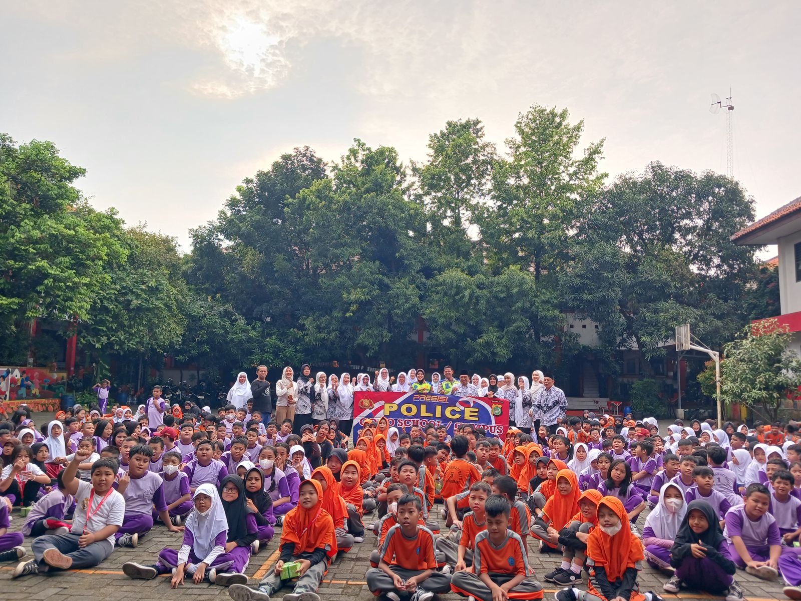 Guna memberikan pengetahuan berlalu lintas ke anak-anak siswa SD, Unit Kamsel Sat Lantas Polres Metro Tangerang Kota melaksanakan giat ‘Police Go to school’.