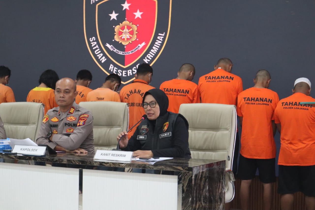Wakapolres Kukar Kompol M Aldy Harjasatya didampingi Kasat Reskrim AKP Ecky Widi Prawira saat konferensi pers menegaskan bahwa pihaknya tidak akan memberi ruang bagi tindak pidana, terutama yang meresahkan masyarakat.