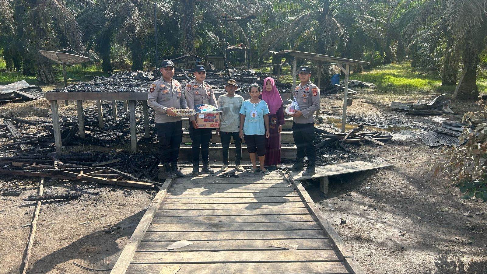 Polres Kutai Kartanegara dan Polsek Tabang melaksanakan kegiatan pemberian bantuan sembako kepada korban kebakaran rumah di Desa Gunung Sari Kec. Tabang Kab. Kutai Kartanegara, Minggu (16/2).