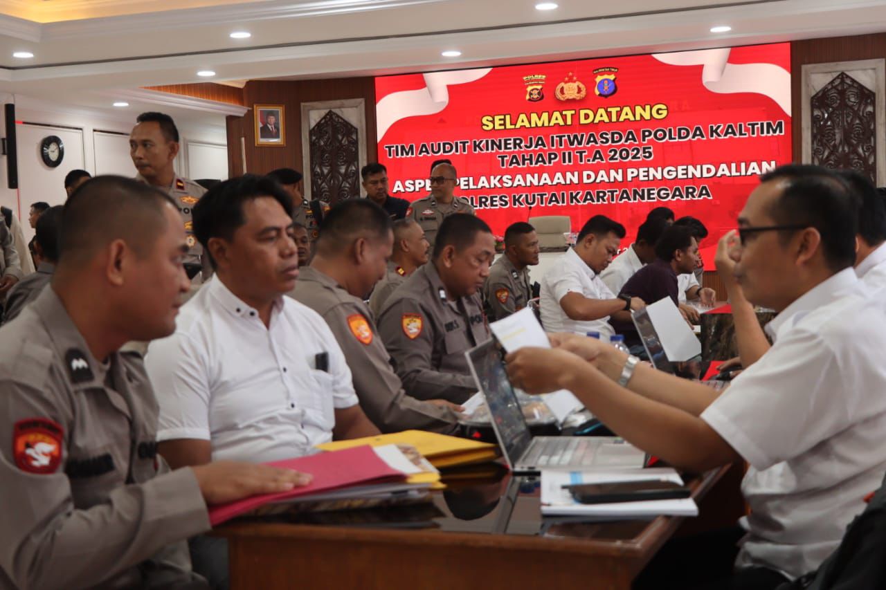 Kukar ,Targethukum.com— Polres Kutai Kartanegara menerima kunjungan Tim Audit Itwasda Polda Kalimantan Timur dalam rangka pelaksanaan Audit Kinerja Tahap II Tahun Anggaran 2025 yang berfokus pada aspek pelaksanaan dan pengendalian. Kegiatan berlangsung pada Kamis (13/11/2025) di Ruang Catur Prasetya, Lantai 3 Mako Polres Kutai Kartanegara.