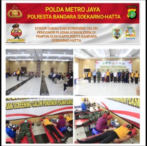 Polresta Bandara Soekarno-Hatta mengadakan donor darah dan Screening calon pendonor plasma konvalesen yang dipimpin oleh Kapolresta Bandara Soekarno-Hatta Kombes Pol Adi Ferdian Sahputra, Sabtu (13/02/2021)