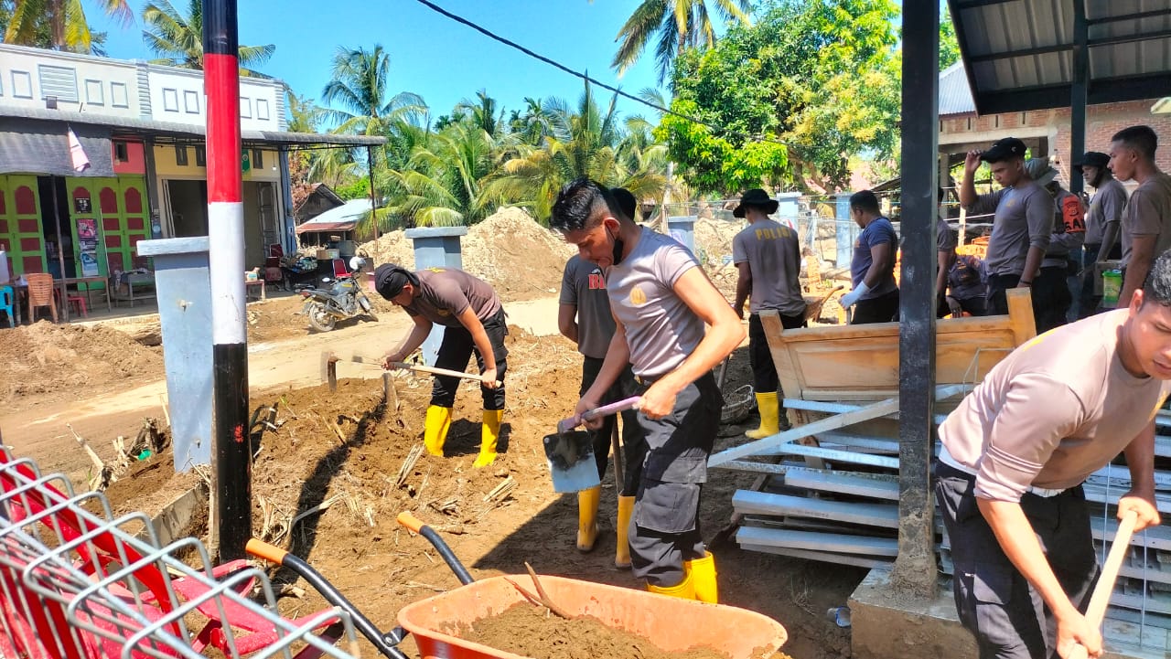 Gotong royong pembersihan yang dimulai sekitar pukul 09.00 WIB ini dipimpin oleh Kapolres Pidie Jaya, AKBP Ahmad Faisal Pasaribu, S.H., S.I.K., M.H., sebagai bentuk nyata kehadiran Polri di tengah masyarakat yang terdampak bencana.