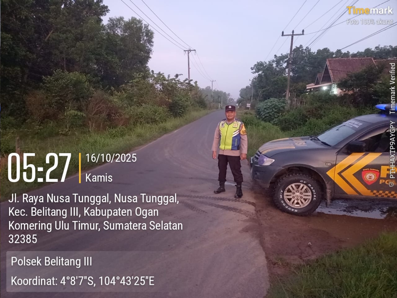 Dalam rangka mencegah gangguan kamtibmas serta guna ciptakan kondusifitas wilayahnya unit Patroli Polsek Belitang III rutin laksanakan Patroli hunting pagi yang berada di wilayah hukumnya. kamis (16/10/2025)Patroli ini difokuskan pada area jalanan sepi yang rawan terjadi tindak pidana, khususnya kejahatan 3C (Curat, Curas, dan Curanmor).