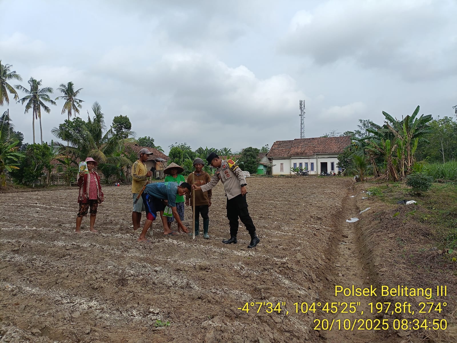 OKU Timur | www.targethukum.com —Polsek Belitang III Polres OKU Timur kembali menunjukkan dukungannya terhadap program ketahanan pangan nasional melalui kegiatan penanaman jagung 1 desa 1 hektar, yang dilaksanakan di Desa Nusa Jaya, Kecamatan Belitang III, pada Senin (20/10/2025) pagi.