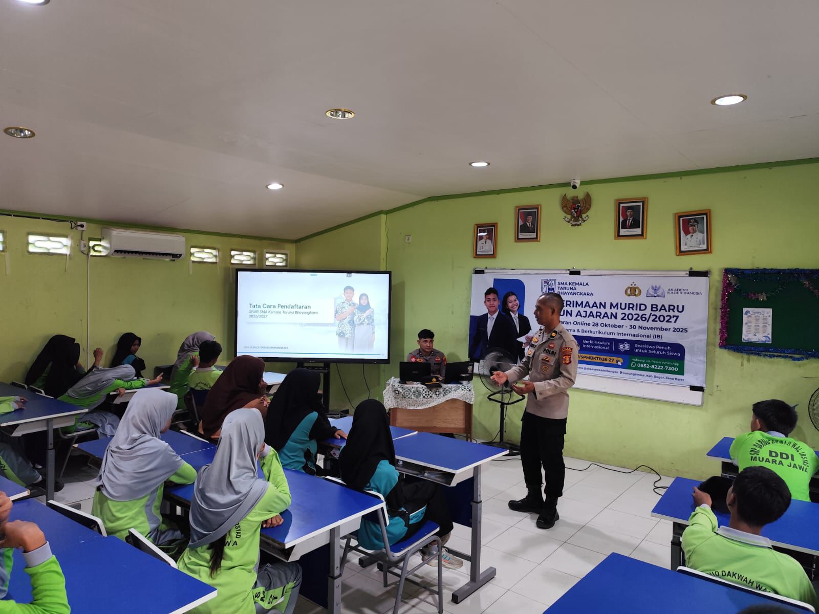 Kukar, Targethukum.com— Polsek Muara Jawa melaksanakan kegiatan sosialisasi penerimaan peserta didik baru SMA Kemala Taruna Bhayangkara di SMP Darul Da’wah Wal-Irsyad, Jalan A. Yani RT 10, Kelurahan Muara Jawa Ulu, Jumat (14/11/2025).