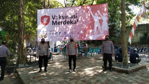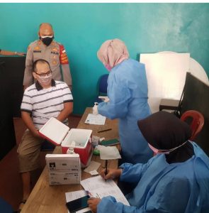 Adapun proses pelaksanaan Vaksin Covid 19 Merdeka ini dipantau langsung oleh Kapolsek mulai dari :