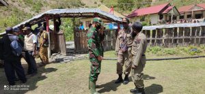 Tinginambut,Targethukum.com- Bertempat di halaman kantor Distrik Tingginambut Babinsa Posramil 1714-06/Tingginambut yang diwakilkan oleh Sertu Suryanto dan Sertu Sukino melaksanakan pendampingan kunjungan kepala dinas pemberdayaan masyarakat kampung Bapak Irwan Tabuni dan di hadiri oleh kepala distrik beserta seluruh kepala kampung distrik tingginambut, Sabtu 19 Juni 2021