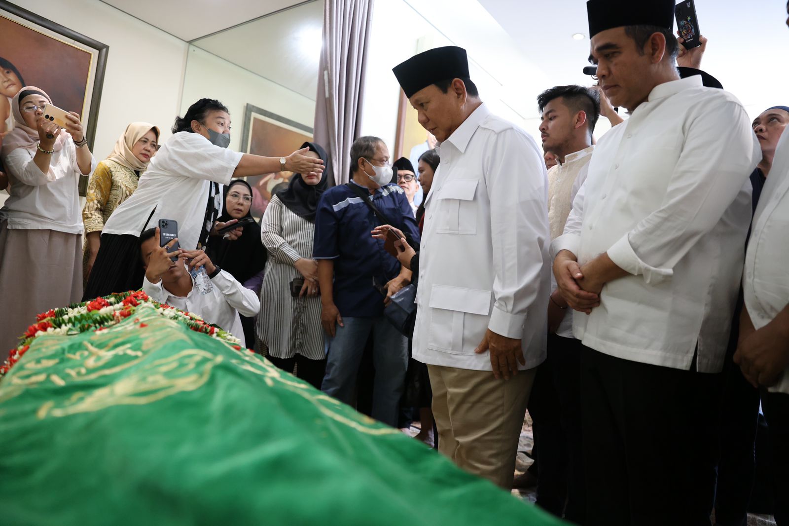 Ketua Umum Partai Gerindra Prabowo Subianto takziah ke rumah duka Desmond Junaidi Mahesa selaku Wakil Ketua Dewan Pembina Partai Gerindra yang berada di Ragunan, Jakarta Selatan, Sabtu pagi (24/6).