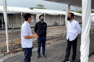 “Sore hari ini saya melihat secara langsung Rumah Oksigen Gotong Royong yang dalam proses ini belum selesai. Nanti akan selesai minggu depan dan akan rampung 100 persen nanti mungkin di awal Agustus yang bisa menampung kurang lebih 500 pasien,” ujar Presiden Jokowi di lokasi.