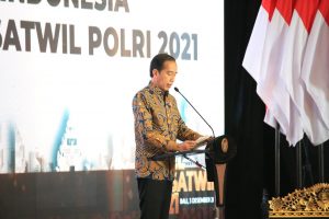 Presiden RI Ir. H. Joko Widodo hadiri Apel Kasatwil Polri tahun 2021, yang berlangsung di The Apurva Kempinski Hotel, jalan Raya Nusa Dua Selatan Benoa Bali, jumat (3/12/2021).