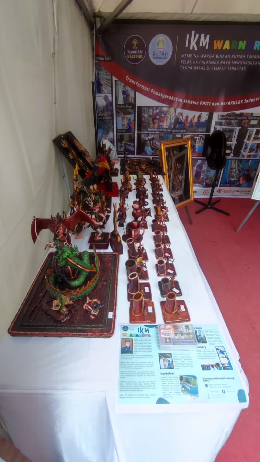 Palangka Raya,Targethukum.com – Hasil Karya Warga Binaan Rutan Palangka Raya (WARNARUPA) dipamerkan pada stand bazar gelaran Festival Palangka Raya 2023 yang terpusat di gedung Olah Seni Disparbudpora Kota Palangka Raya pada tanggal 2 Mei s.d. 4 Mei 2023.