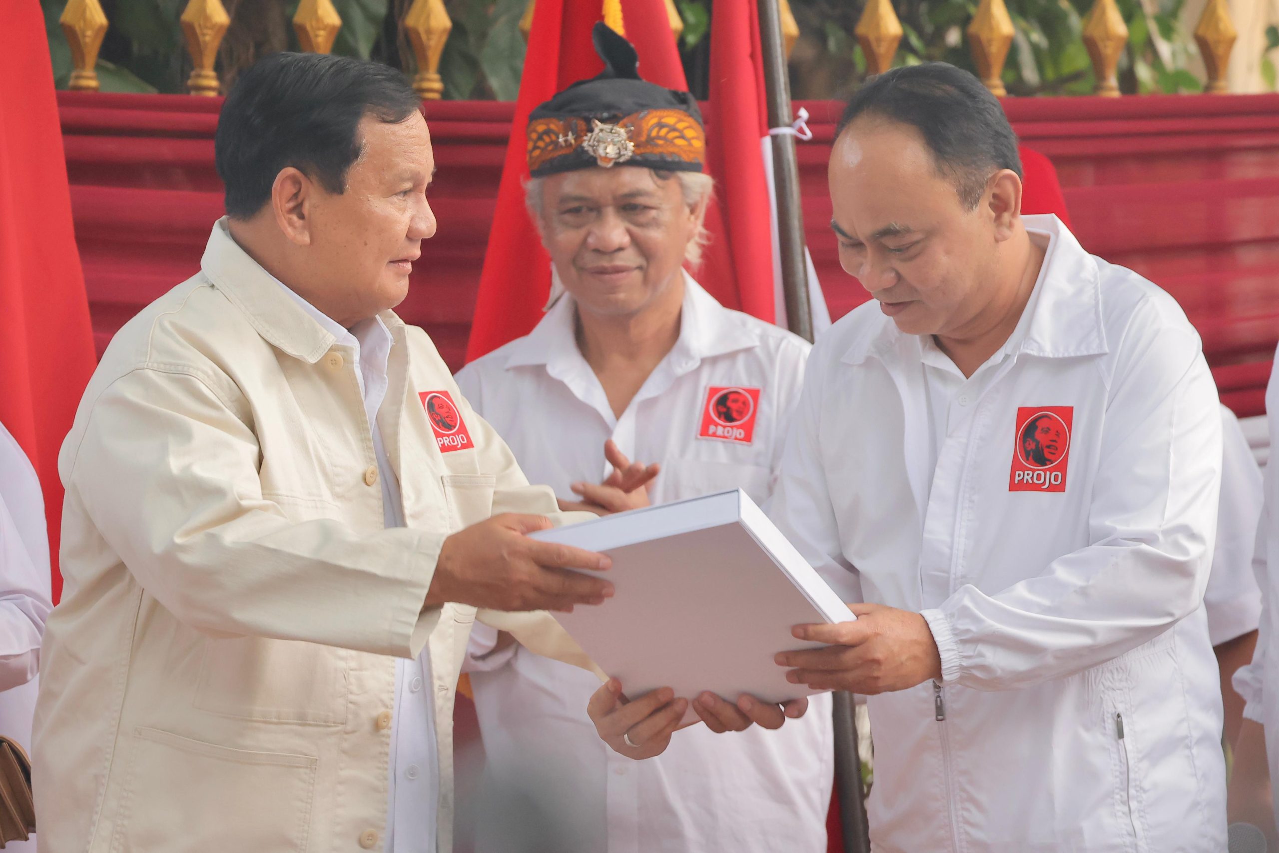 Projo, relawan Presiden Joko Widodo (Jokowi), mendeklarasikan dukungan mereka untuk bakal calon presiden (bacapres) Prabowo Subianto dalam Pilpres 2024 mendatang.