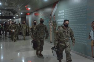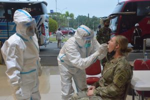 Palembang,Targethukum.com – Protokol kesehatan (prokes) Covid-19 dilakukan secara ketat terhadap 330 Tentara Amerika (US Army) saat tiba di Bandara Sultan Mahmud Badaruddin II Palembang, Sabtu (24/7/2021). Kedatangan 330 Tentara Amerika gelombang pertama ini, untuk mengikuti Latihan Bersama _Garuda Shield ke 15 / 2021_, dan merupakan latihan terbesar dalam sejarah kerja sama antara TNI AD dengan AD Amerika Serikat. Demikian disampaikan Kepala Dinas Penerangan, Brigjen TNI Tatang Subarna, Sabtu (24/7), di Palembang.
